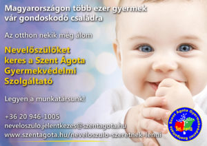 Magyarországon jelenleg közel huszonháromezer gyermek nevelkedik gyermekvédelmi gondoskodásban. Ma már nem nagy létszámú intézetekbe, hanem kisebb, szeretetteljes közösségbe: nevelőszülőkhöz, vagy lakásotthonokba kerülnek az után, hogy a vér szerinti családjukból kiemelték őket.